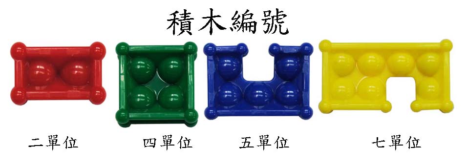 ◆積木四顆(二單位、四單位、五單位、七單位)